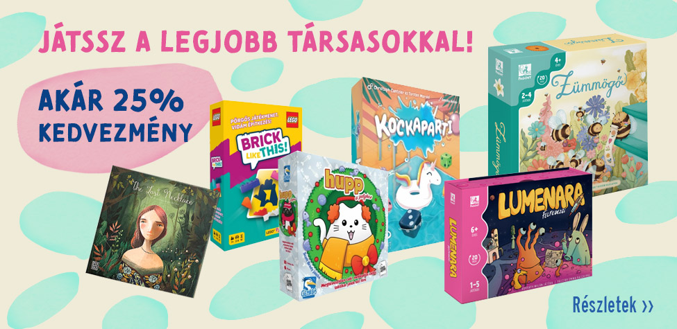 Játssz a legjobb társasokkal!Ez egy olyan válogatás, amivel nem lőhetsz mellé: itt találod a legnépszerűbb, legújabb, leginkább fejlesztő és szórakoztató társasokat, amikkel a gyerekek együtt vagy versengve, családdal vagy akár egyedül is tudnak játszani!
