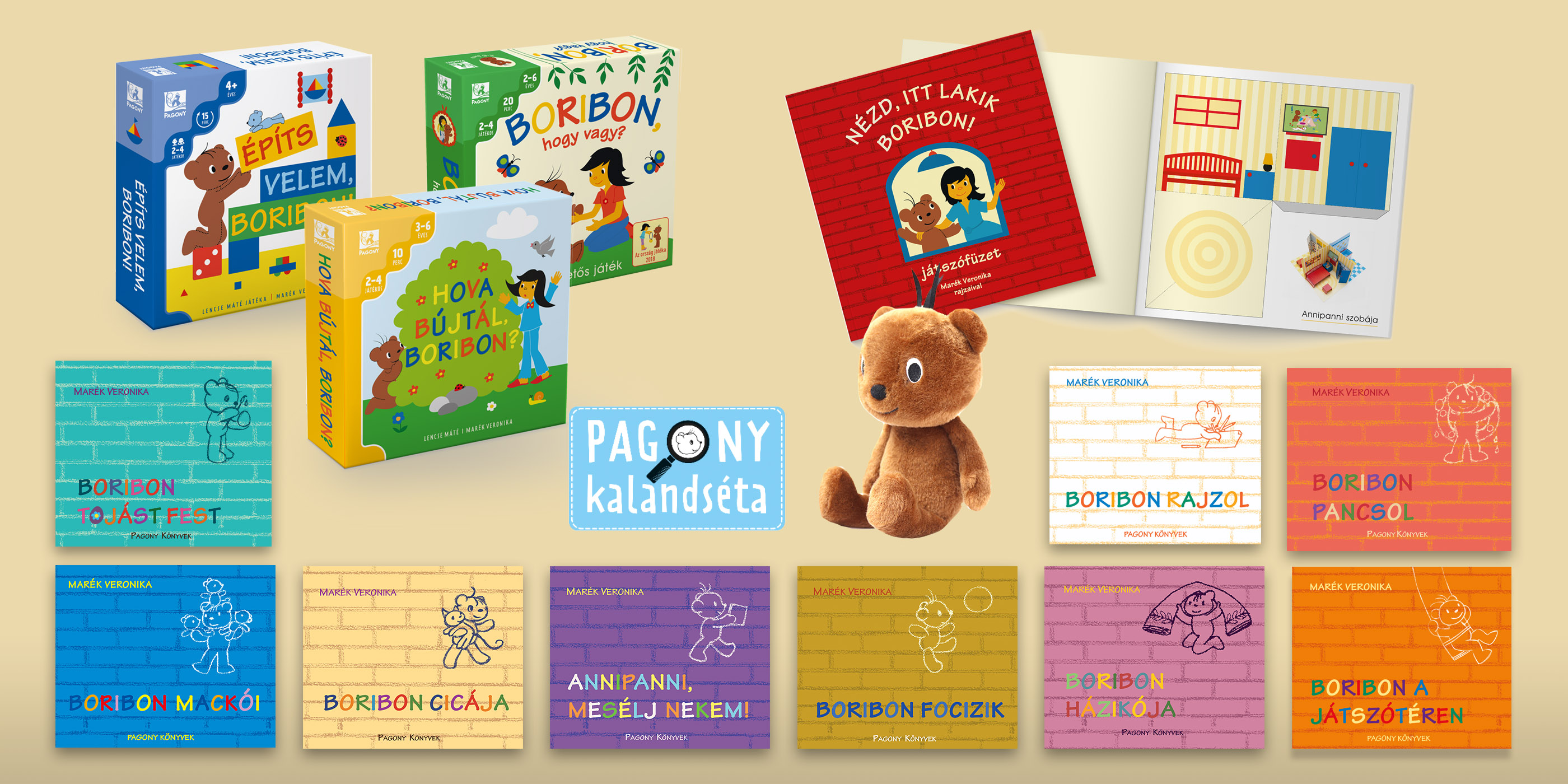 Boribon, a kedves játékmackó sok gyerkőc számára a legelső fiktív barát, akivel a mesék birodalmában megismerkednek. A könyveken kívül már plüssjáték és sokféle társas formájában is találkozhattok Boribonnal, Annipannival és a többi szereplővel. Most pedig egy új formátummal bővül a sorozat. Ismerd meg ezt a szuper játszófüzetet, melynek segítségével még jobban elmerülhettek Marék Veronika mesevilágában. Nézd, itt lakik Boribon!
