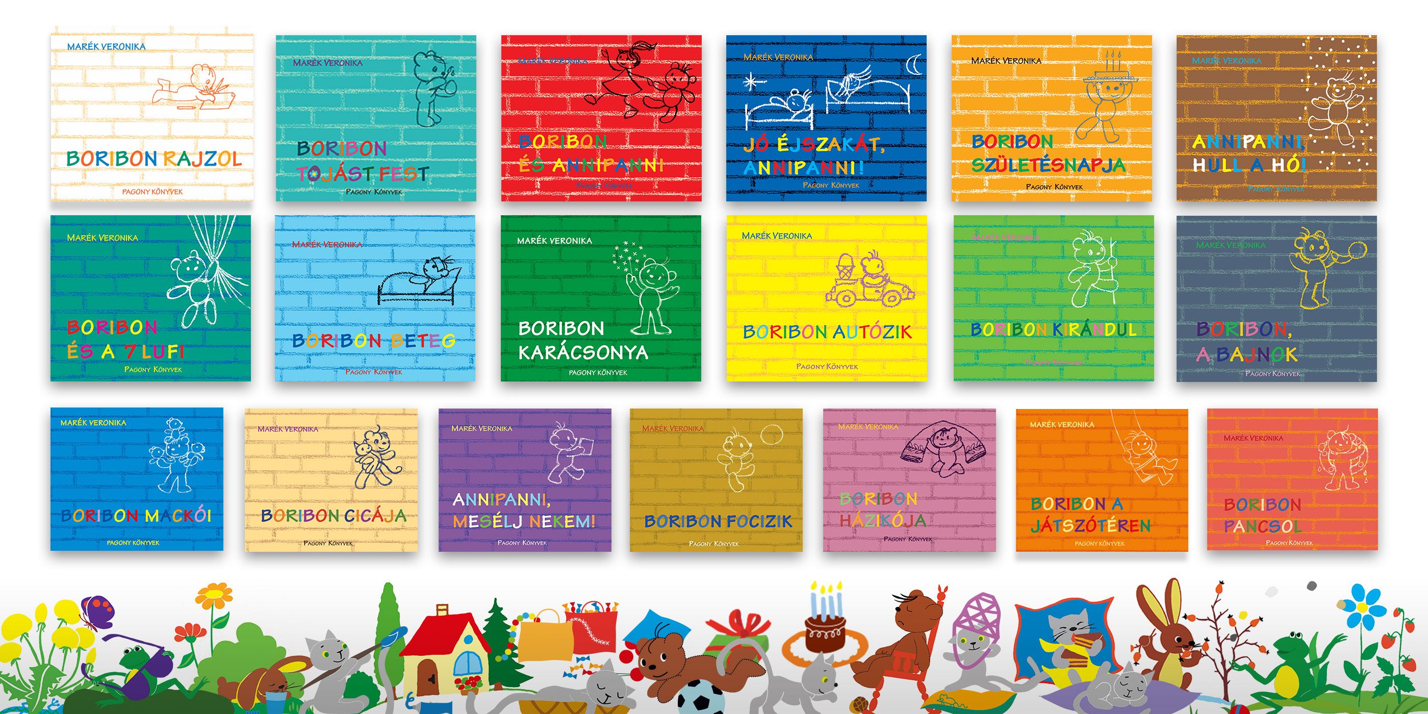 Marék Veronika, a Boribon-mesék szerző-illusztrátora, a Pagony legelső és egyik legfontosabb szerzője, a magyar gyerekirodalom megkerülhetetlen alakja. A 80. születésnapjára jelent meg 2017-ben az ünnepi kiadás. A limitált példányszámú különlegességben öt kis Boribon-történet rejtőzik egy elegáns díszdobozban: Boribon és a 7 lufi, Boribon házikója, Boribon születésnapja, Jó éjszakát, Annipanni, Annipanni mesélj nekem!