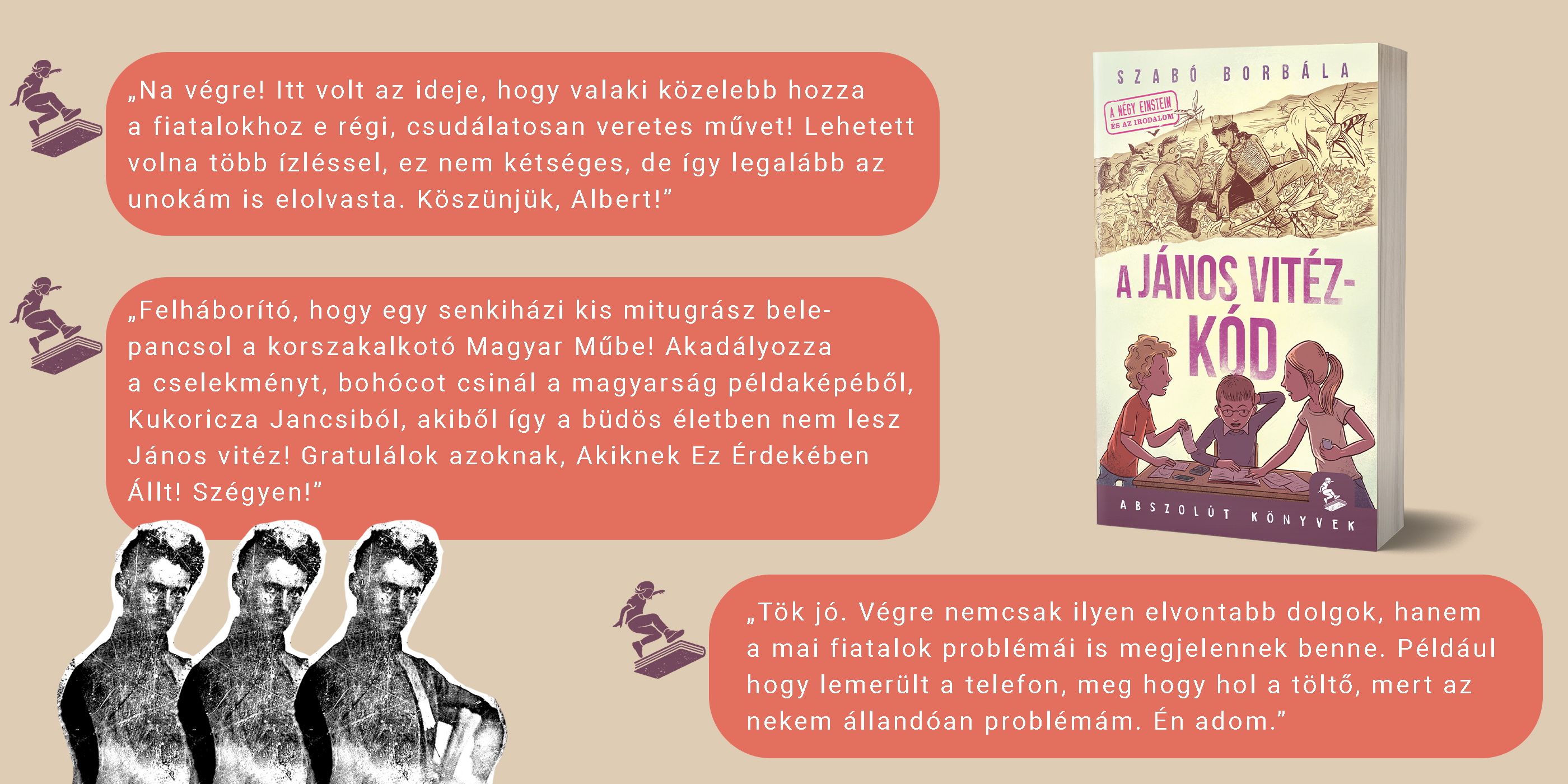 Mi köze egymáshoz a mateknak és az irodalomnak? Hogy kerül egy plusz szereplő a János vitézbe? Megannyi kérdés, amikre mind választ kaptok Szabó Borbála legújabb regényében, A János vitéz-kódban. Azok a gyerekek, akiket eddig untattak a kötelező olvasmányok, most biztosan másként fognak rájuk tekinteni! Egy igazán mai, hihetetlenül vicces és kalandos sztori, az Abszolút könyvek legújabb tagja.