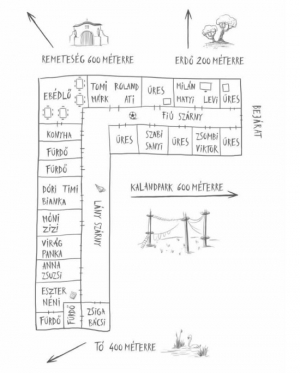 te magában. Az sem rázta meg igazán, amikor Zsiga bácsi megjelent az ebédnél, és mindenkinek begyűjtötte a telefonját – mondván: kirándulás alatt nincs kütyüzés. Nem fog tudni este beszélni anyával. De minek is? Úgyis csak aggódó hangon faggatná, hogy jól érzi-e magát. És ha nem? Akkor sem szabadulna ki innen! Azért sem szomorkodott úgy, mint a többiek, hogy nem maradt idő délután a kalandparkra. A fiúk vették észre a buszból a fákra fűzött köteleket, mászókákat. Az út mentén állt, nem is olyan messze a táboruktól. A tanárok megígérték, hogy valamikor elmehetnek, de aztán lefújták, mondván, sietni kell a remeteségbe, mert időpontot foglaltak idegenvezetésre. Így a kalandpark helyett az ellenkező irányba indultak el.