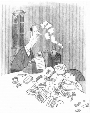 Blom bácsi az írógépén kopogott. Az ősöreg, hatalmas masina őrült ricsajt csapott. Blom bácsi tudós volt, és könyvet írt Politikai feszültségek a középkorban címmel. Igencsak tudós könyvet.