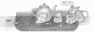 Nella Della vizet öntött a szép kék teáskannába. Kinyitotta a szekrényt, hogy kivegye a teásdobozt. Lepke cica is bedugta az orrát a szekrénybe, és megszaglászta az alsó polcot.