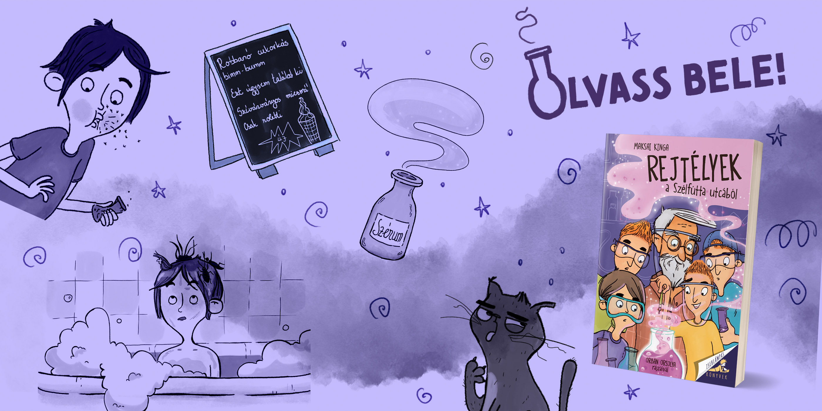 Egy éjszaka alatt kékre színeződött haj és szemöldök. Egy rendkívül furcsán viselkedő idős hölgy. Egy nagyszemű plüssjátékokat elcsenő vérszarka. Egy átlátszó virágú rózsabokor. Egy kékes füstöt eregető házkémény. Mi a közös mindezekben? Hogy ez a sok furcsaság mind a Szélfútta utcában történik! Olivérnek, aki születése óta az utca lakója, ki kell deríteni, hogy mi (vagy ki?) zavarja meg az itt lakók mindennapjait. Olvass bele a regénybe, amit biztosan imádni fog a kiskamaszod!