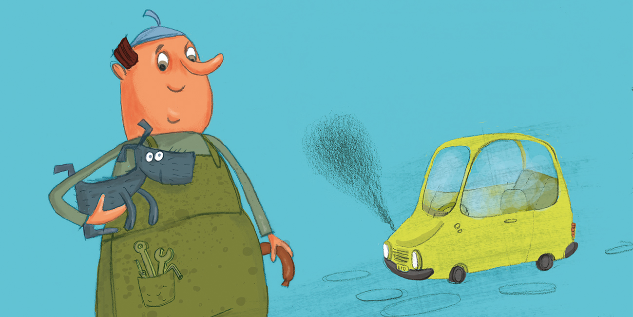 May Szilvia meséjét olvashatjátok Pudlimászról, a háromlábú kutyáról és gazdájáról, a mindent megszerelő Imbusz mesterről. Imbusz mester autószerelő, de ha kell, rövidlátó vagány tanítónőnek szerel szemüveges autót, autóversenyző kutyáknak mindenféle trükkös járgányt, vagy éppen egy olyan kocsit, amit a bandázó rosszkutyák az életben nem érnek utol.