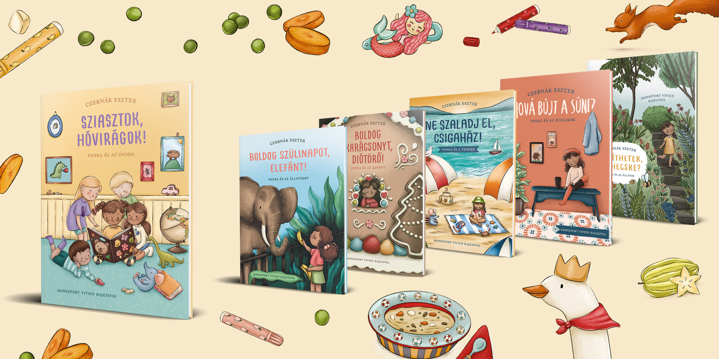 Fedezd fel a világot Pankával!Ismerd meg Czernák Eszter Panka-könyveit! Panka egy óvodás kislány, aki mindennap hosszú sétára indul anyukájával, kertészkedik a nagypapájával és segít az állatoknak az apukájával. Mint minden kisgyerekben, úgy benne is rendre felmerülnek kérdések az őt körülvevő világgal kapcsolatban. A felnőttek pedig szerencsére kellő tájékozottsággal, mégis egyszerűen, a kisebbek számára is érthetően válaszolnak a felmerülő kérdésekre. Ismerd meg Czernák Eszter mesekönyvsorozatát, melyet Monszport Vivien rajzai tesznek még aranyosabbá! Olvass tovább!